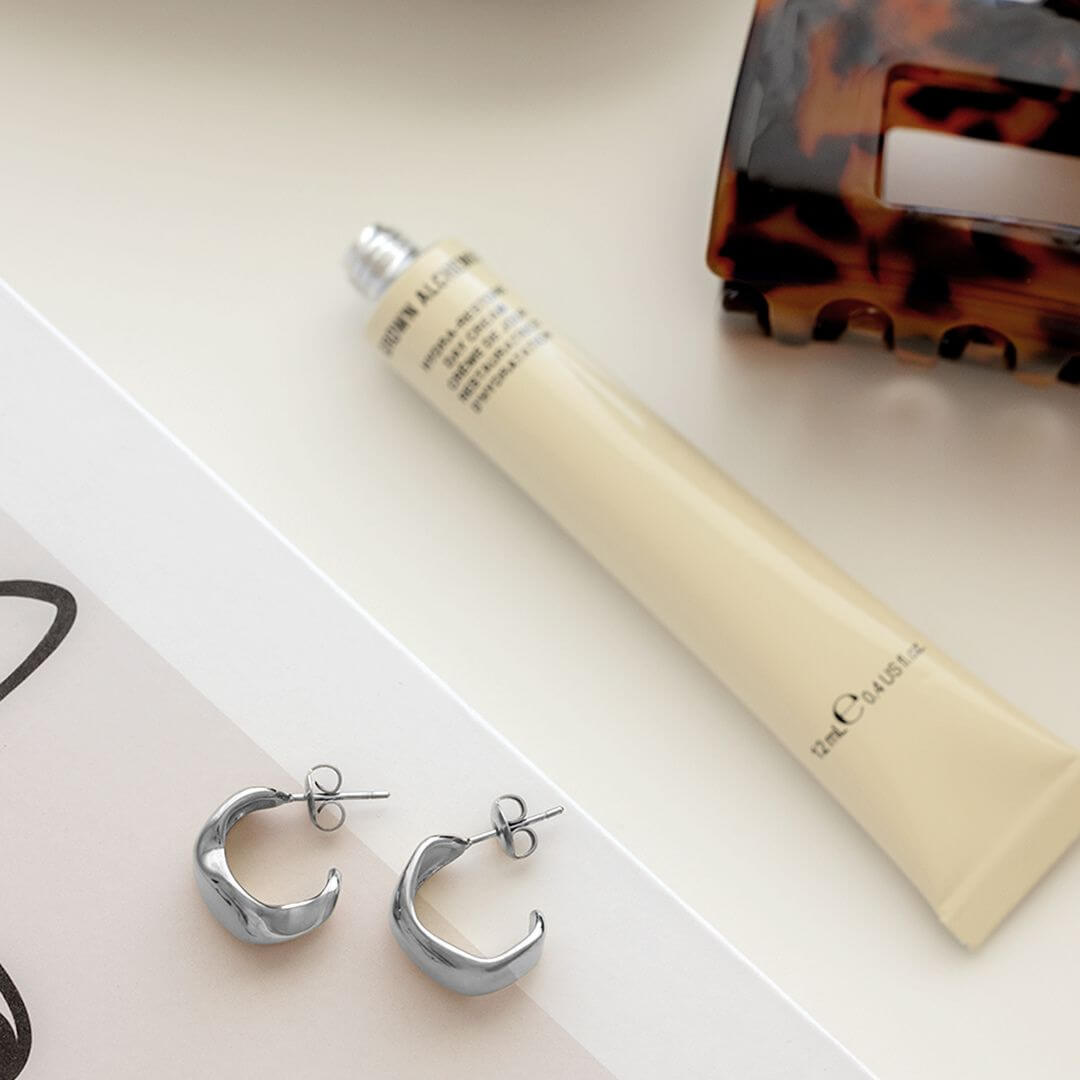 Designed with a soft, organic, melted silhouette and secured with a classic stud back, these earrings bring an artful, modern edge to your everyday style. Their fluid curves catch the light from every angle, creating a statement that feels both striking and effortlessly wearable.