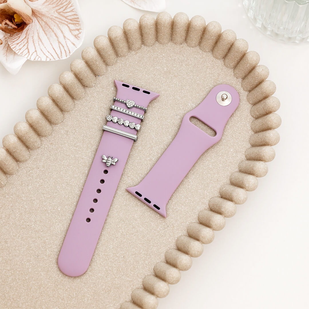 Designed to be worn with our Classic Silicone Bands, This set of Apple Watch Bars and Apple Watch Charm can be worn as a single accessory or stacked together for an infinite combination of custom looks.