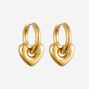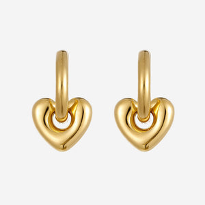 Designed with a sleek classic huggie silhouette and finished with a softly sculpted puffy heart charm, these earrings bring effortless elegance to any look. Lightweight, polished, and perfectly sized for everyday wear.