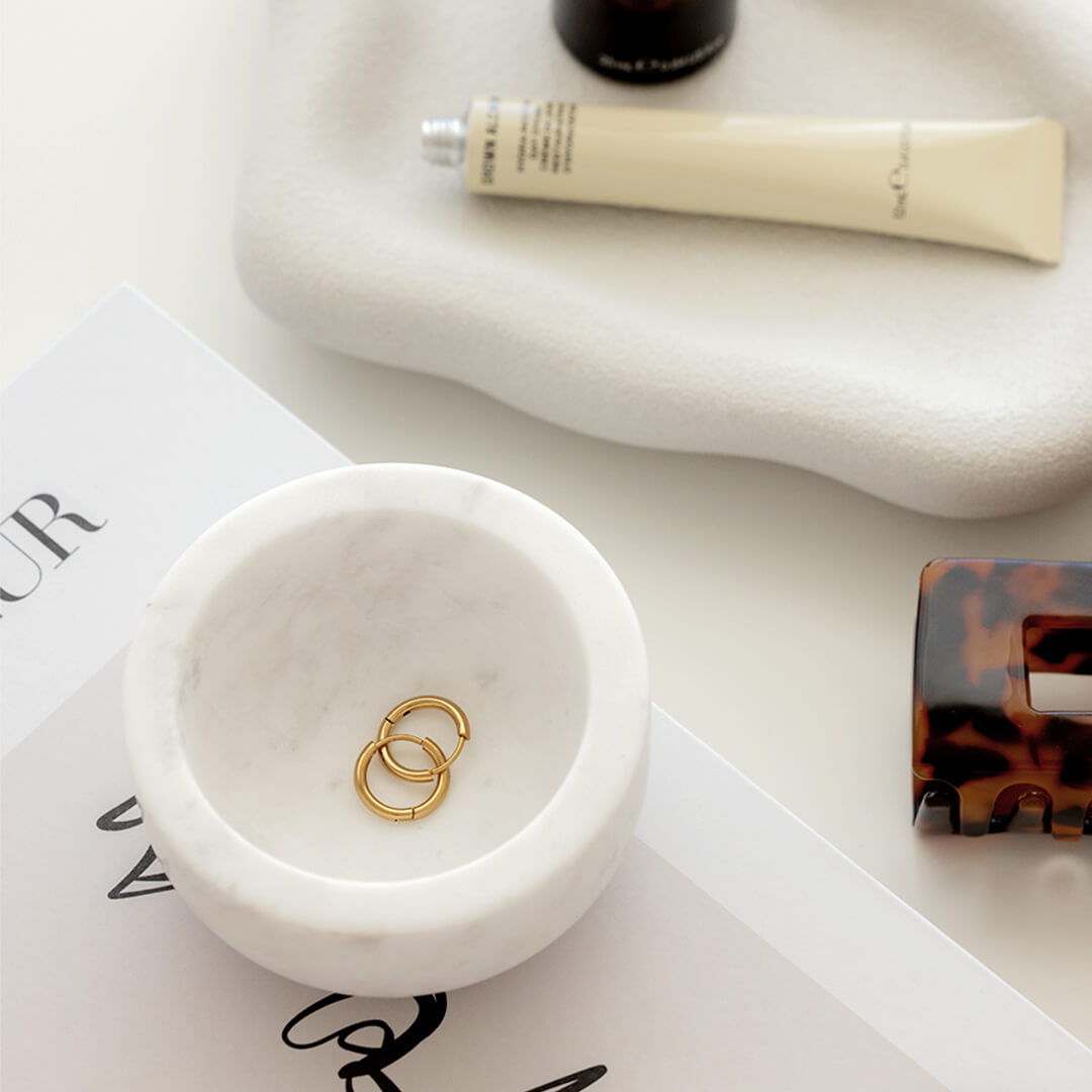 We recommend storing your earrings in the pouch they are received in to prevent scratching and to keep their shine in tact.